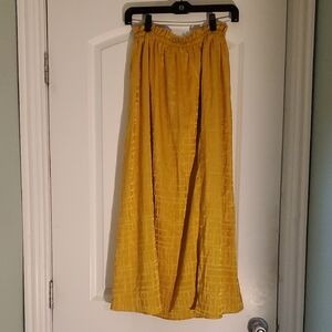 Chic yellow maxi skirt with a textured pattern. Perfect for versatile styling.