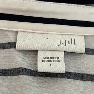 J Jill Top Shirt Womens Large Black White Strip Button Tunic Rayon Office Career