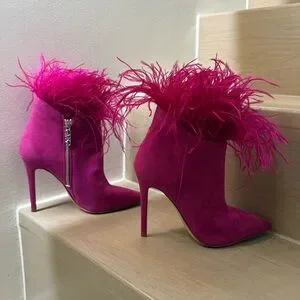 NEW NWT • Michael Kors • Whitby Feather Trim Suede Ankle Boot •