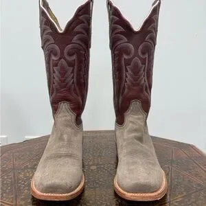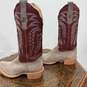 Women’s R Watson Western Cowboy Boots - Grey and Burgundy