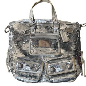 Coach Poppy Spotlight Sequin Satchel, specifically a limited edition model from the "Spotlight" collection.
