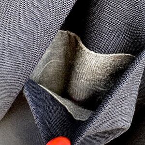 2 front slip pockets lined in a grey silk blend material.