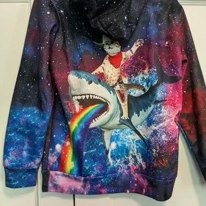 UNICOMIDEA Hoodie Pullover Cat & Shark In Space Purple Xxl