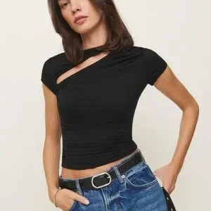 reformation top black top chest slit open front t shirt reformation trendy top going out top summer short sleeve
