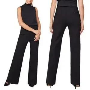 NWT- Spanx Perfect Ponte Smoothing Stretch Twill Wide Leg Dress Pant - Black - L