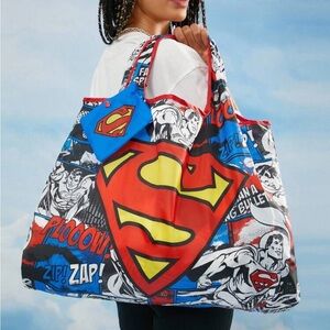 Oversized Superman comic inspired graphic print tote bag. Perfect for shopping or travel for the Superman fan. NEW