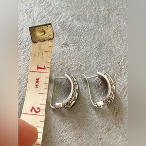 These elegant women's earrings feature a stunning combination of silver and black, perfect for any occasion. The intricate design adds a touch of sophistication to your look.