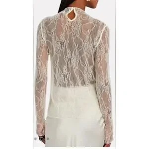 Brand New WeWoreWhat Women's Size Medium Ivory White Lace Mock Neck Top