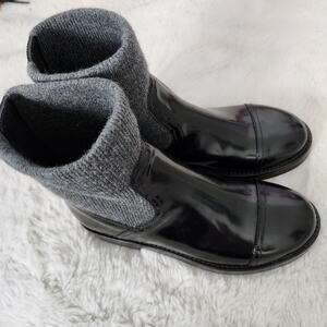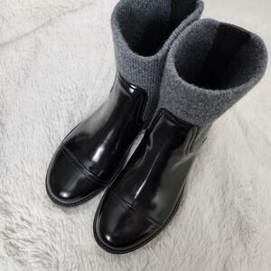 J. Crew Boots, Ankle Boots, Italian Leather, Black Leather, Rib-Cuff, Ribbed Knit, Chunky, Sock Boot, Fall Boots, Winter Boots.