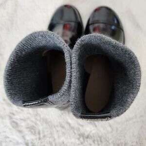 Crafted from high-quality, sturdy Italian leather, they feature a cozy ribbed-knit shaft/cuff (similar to the popular sock boot trend) which allows for easy pull-on wear and a comfortable fit. The chunky sole makes them ideal for fall and winter weather while adding an edgy, modern appeal.