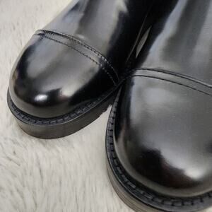 NEW IN BOX (NIB)! Step into sleek sophistication with the J. Crew Rib-Cuff Chunky Ankle Boots in premium black Italian Leather.
