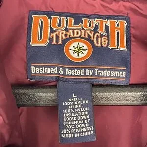 Duluth Trading Co Goose Down Puffer Vest Mens Large Maroon Burgundy 41023