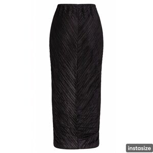 This stunning black skirt showcases a ruched design that creates a flattering and form-fitting silhouette. The textured fabric adds depth and catches the light, making it perfect for a stylish day at the beach.