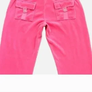Juicy Couture Vintage Pant Women's Medium Hot Pink Velour Y2K Low Rise Wide Leg