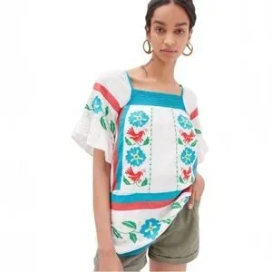 Anthropologie Seen Worn Kept Embroidered Tunic blouse US size 6