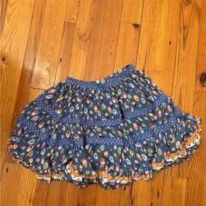 This vibrant floral skirt features a beautiful blend of blue and orange, perfect for adding a pop of color to your wardrobe. Ideal for casual outings or a day at the beach.