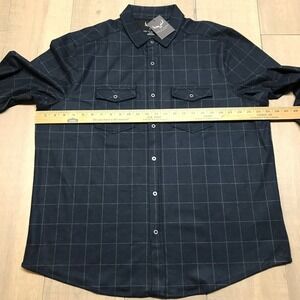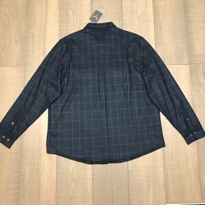 Age of Wisdom Flannel Shirt Mens Size XL Blue Window Pane Plaid Button Up Stretch Knit