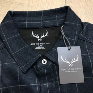 Age of Wisdom Flannel Shirt Mens Size XL Blue Windowpane Plaid Button Up Stretch