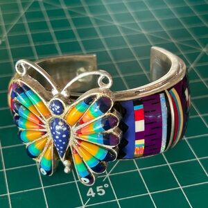 Multi Turquoise Inlay Butterfly Cuff Bracelet Southwest