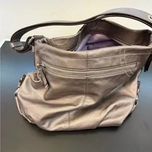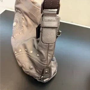 Coach Silver Leather Studded Embossed Shoulder Bag and can convert to crossbody bag