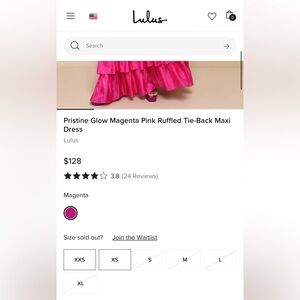 Lulus Pristine Glow Magenta Pink Ruffled Tie-Back Event Dress Womens Small 2 / 4
