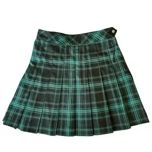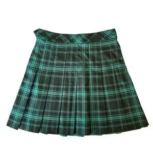 H&M Divided Twill Green & Black Plaid Tartan Pleated Flared Mini Skirt, Size 2