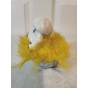 Fun small figurine made in Japan. Adorable pair of poodle pups in a blue basket lined with yellow fur trim. No cracks or chips. Great addition to your collection!