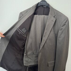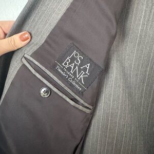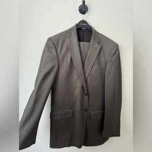 Refined brown suit with subtle stripes. Ideal for formal events. Tailored elegance by Jos. A. Bank.