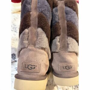 Brand, UGG, Shearling Style, Gray, Women, Suede, Tania, Ankle, Winter, Luxury, Sheepskin, Rubber, Casual, Round Toe, Boot, Durable sole, Iconic branding, Tri-Color, Pull On, Pre-owned.