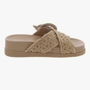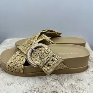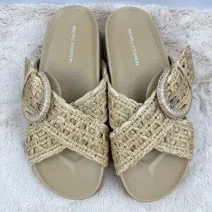 MARC FISHER Women Welti Woven Suntan Natural Tan Slide Sandals Sz. 5.5