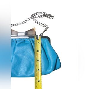 Le Château Turquoise Ruched Clutch w/ Bow Clasp & Silver Chain Strap