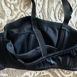 Chic black satin bra with sleek design. Perfect for stylish comfort. Size L / 44 / 3. Made in Italy. 🇮🇹 80% Nylon, 20% Elastane.