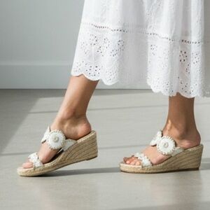 Jack Rogers Cream with Gold Metallic Trim Wedge Slide-in Sandals 8M
