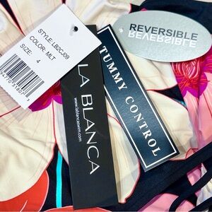 The La Blanca Multi in Full Bloom Reversible One-Piece Swimsuit offers two stylish looks in one with its reversible design, featuring a vibrant floral print on one and a classic solid on the other side. Crafted for comfort and versatility, this swimsuit provides full coverage while maintaining a flattering fit. Perfect for beach days or poolside lounging, it seamlessly combines functionality with eye-catching style.