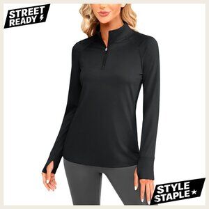 Fleece Quarter Zip Pullover Thermal Long Sleeve Athletic Top Thumb Holes