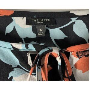 Talbots Women’s 8 Petite Multicolor Chiffon Watercolor Floral Top Short Sleeves