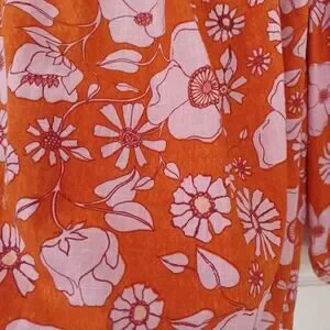 Excellent condition (EC) Free People peasant blouse in bright orange with pink floral print.