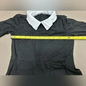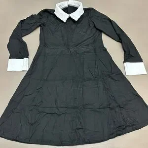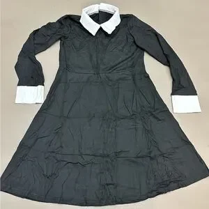 • Classic Gothic Style: Iconic black long-sleeve dress featuring a crisp white Peter Pan collar and matching white cuffs.