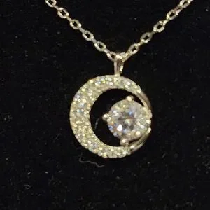 This dazzling moissanite and 925 silver moon pendant necklace is a stunning addition to your jewelry collection. Its shimmering design is perfect for elevating any look. does not come with gra certificate.