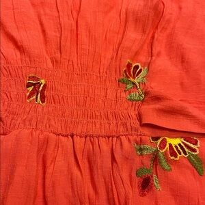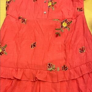 ANTHROPOLOGIE FIG and Flower Coral Floral Midi Dress size Medium.