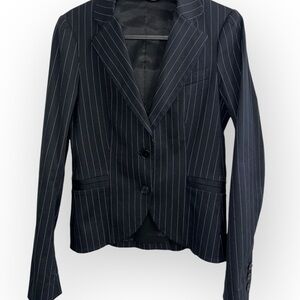 THEORY Navy white Pinstripe double breasted blazer Suit Jacket cotton slim sz 2