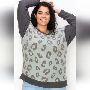 Stay cozy and stylish with this leopard print crew neck sweater. Featuring a chic sage and cream design, it's perfect for any casual outing. Unlined and perfect for cool spring days.