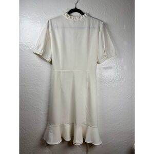 Nanette Lepore Cream Ruffle Neck Wrap Dress Sz 14 Bridal Cocktail Garden Resort