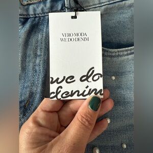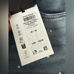 BNWT Vero Moda Straight Leg Pearl Embellished Jean, size 28.