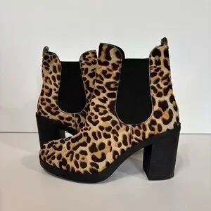 Crown Vintage Cheetah Print Healed Chelsea Boot Size 8.5M