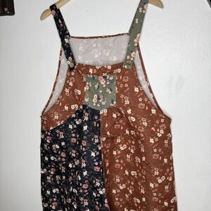 Cottagecore Floral Boho Garden Farm Lightweight Overalls Brown Blue Womens XL