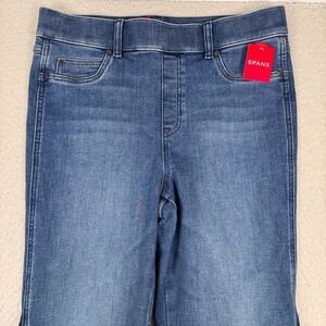 NWT Spanx Flare Jeans Womens Large Mixed Wash 2 Tone Pull on Retro Blue Denim
