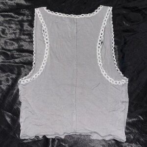cropped, slim-fitting tank top with a sweet lace-trim and lettuce edging on the hem !