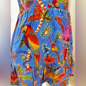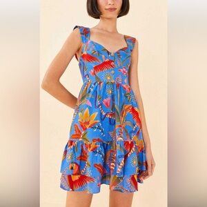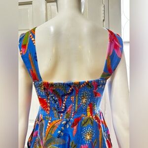 FARM RIO 100%Cotton Macaw Tropical Blue Floral Party Mini Dress Size XS
