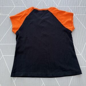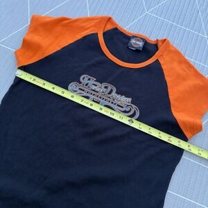 Harley Davidson Y2K Women's Shirt Large 2003 Short Sleeve Cropped Black & Orange